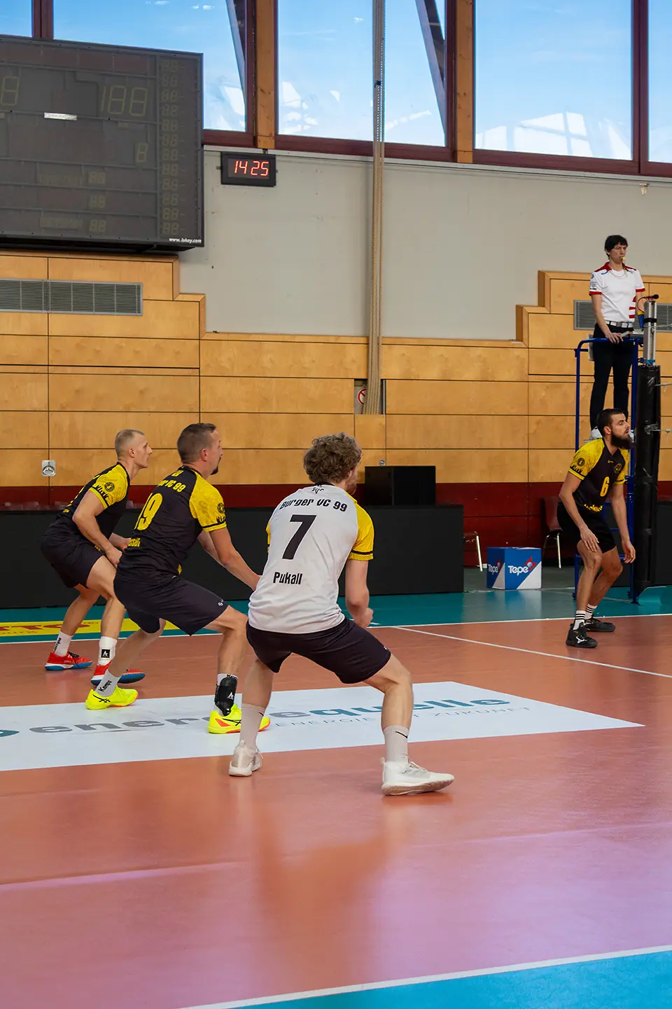 Der Auftakt misslang komplett: schnell lagen wir mit 7:1 zurück. Doch anstatt die Köpfe hängen zu lassen, kämpften wir uns stark zurück in den Satz, holten Punkt um Punkt auf, erspielten uns mehrere Satzbälle – und mussten ihn am Ende trotzdem denkbar knapp mit 29:27 abgeben.